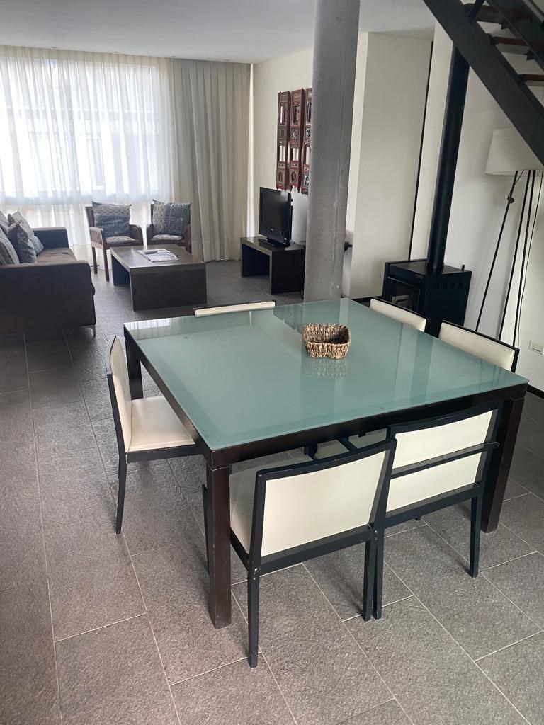 Muy lindo departamento tipo duplex en el complejo Agua Calma en Carilo, ubicado en el tercer piso vista al bosque. Se vende totalmente amoblado .Consta de dos plantas : Planta baja living , comedor integrado a la cocina , cuarto principal en suite con vestidor y baño completo con jacuzzi . Segundo baño completo con ducha. Balcón de 20 m2 con parrilla. Planta alta con cama matrimonial más dos camas individuales y preparado para subdividir en dos dormitorios y con instalaciones para un tercer baño logrando transformarlo en 3 dormitorios con tres baños. Distancia al mar: 3 cuadras Distancia al centro: 1 cuadra CMCPSI Mat Nº 6940 AVISO LEGAL: Las descripciones arquitectónicas y funcionales, valores de expensas, impuestos y servicios, fotos y medidas de este inmueble son aproximados. Los datos fueron proporcionados por el propietario y pueden no estar actualizados a la hora de la visualización de este aviso por lo cual pueden arrojar inexactitudes y discordancias con las que surgen de los las facturas, títulos y planos legales del inmueble. El interesado deberá realizar las verificaciones respectivas previamente a la realización de cualquier operación, requiriendo por sí o sus profesionales las copias necesarias de la documentación que corresponda.