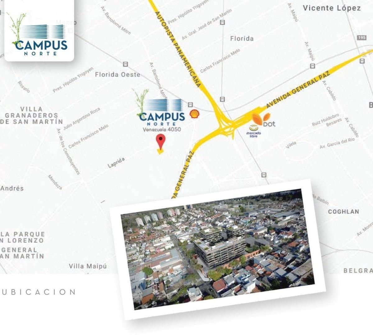 Departamento luminoso a estrenar en edificio Campus Norte en Villa Martelli , Vicente López. EL PRECIO INCLUYE UNA COCHERA Campus Norte se desarrolla en un predio de 8.500 m2 con 140 unidades de 1. 2 y 3 ambientes. 1.200 m2 de amenities : Terraza, parrillas, chill out, 2 piscinas . Cocheras de cortesía. Módulos sustentables y espacios diseñados para trabajar y vivir cerca de todo. A solo 700 mts de Av. General Paz y Panamericana con accesos rápidos a CABA y Zona Norte. Consultar por 2 y 3 ambientes. CMCPSI #6940 Todas las superficies y medidas son a título informativo sujetas a plano. Las fotos no son vinculantes ni contractuales.