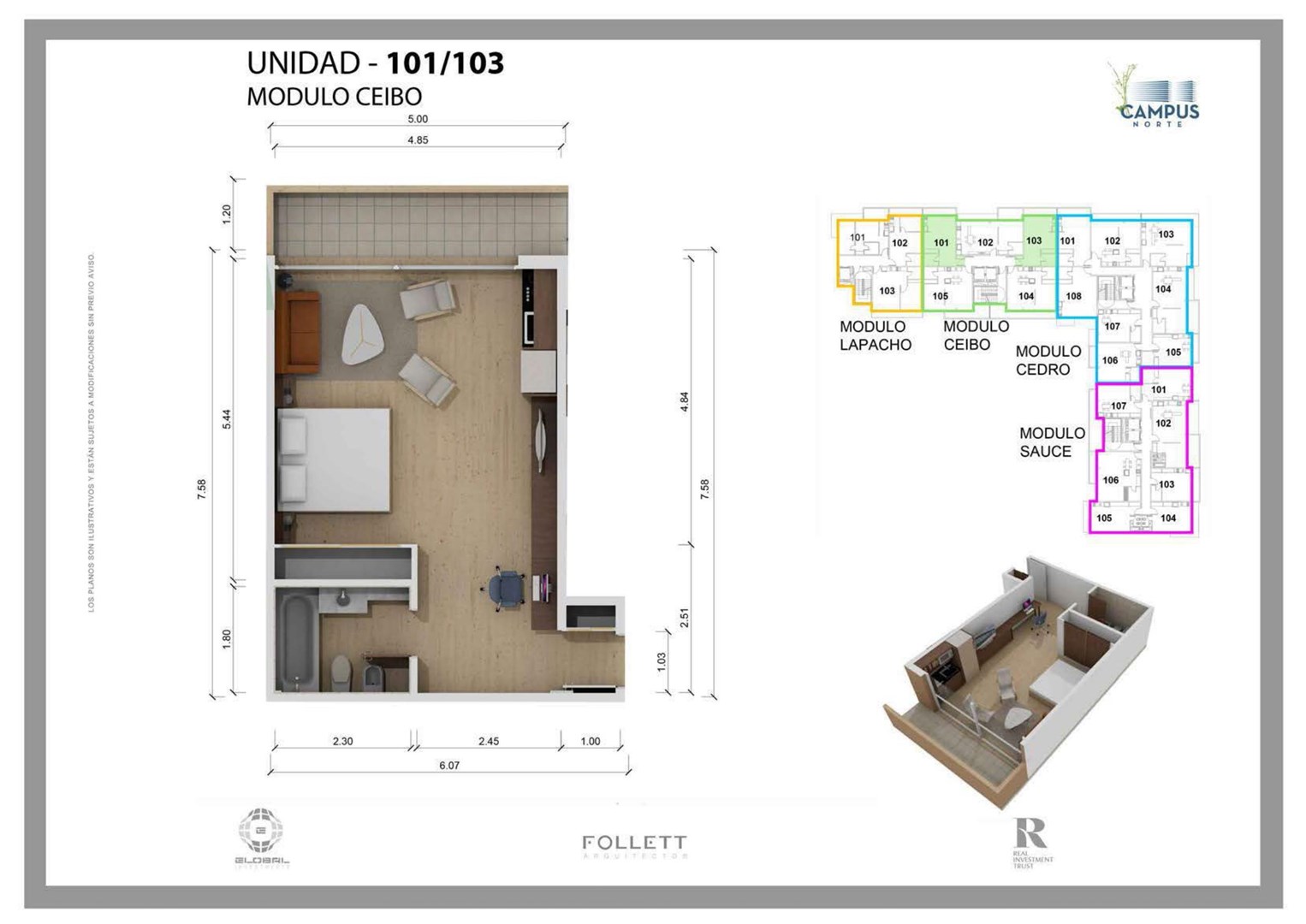 Villa Martelli , Vicente López. COCHERA INCLUIDA EN EL PRECIO Departamento luminoso a estrenar con cochera en edificio Campus Norte en un predio de 8.500 m2 con 140 unidades de 1. 2 y 3 ambientes. 1.200 m2 de amenities : Terraza, parrillas, chill out, 2 piscinas . Cocheras de cortesía. Módulos sustentables y espacios diseñados para trabajar y vivir cerca de todo. A solo 700 mts de Av. General Paz y Panamericana con accesos rápidos a CABA y Zona Norte. Consultar por 2 y 3 ambientes. CMCPSI #6940 Todas las superficies y medidas son a título informativo sujetas a plano. Las fotos no son vinculantes ni contractuales.